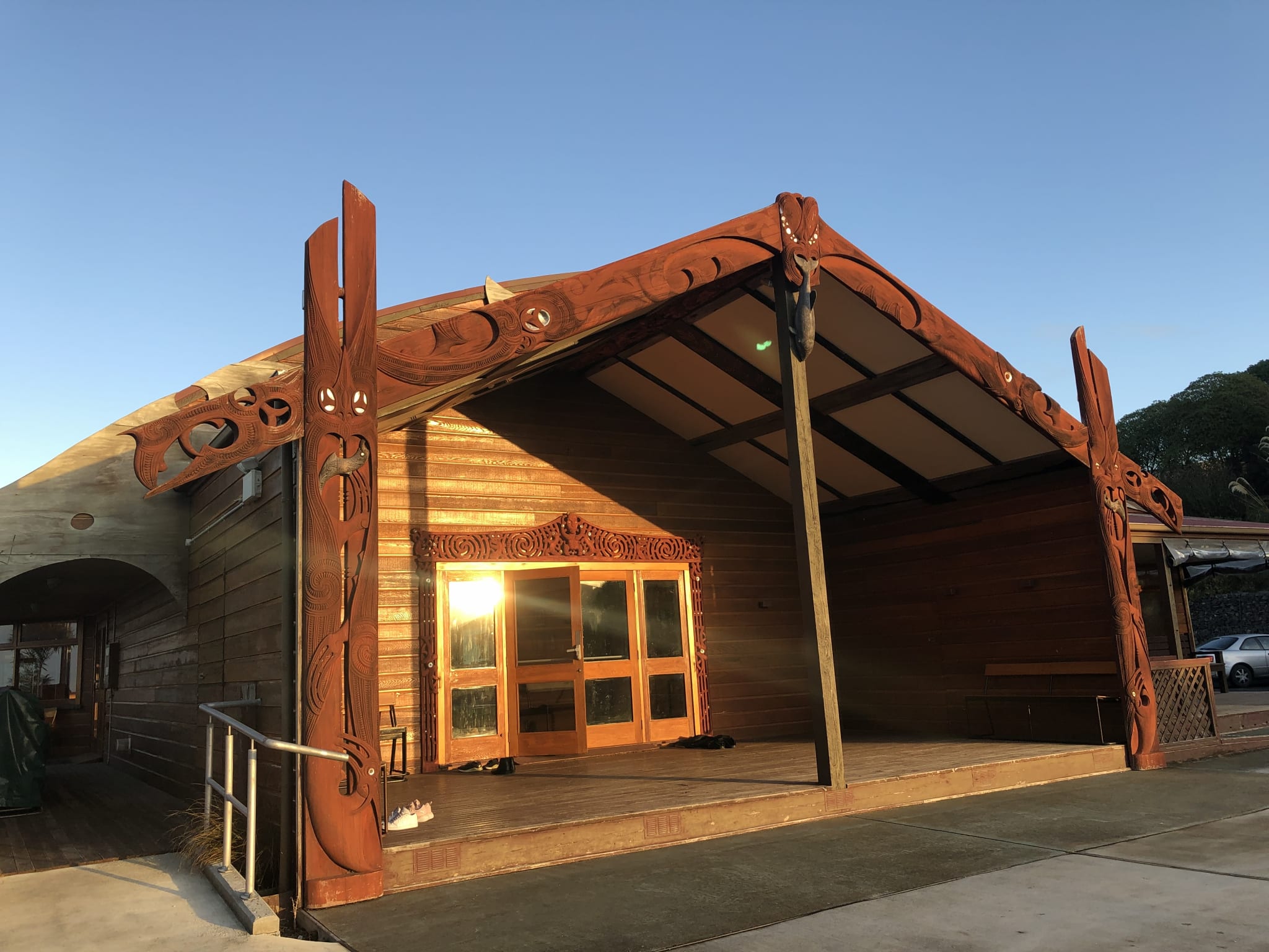 When you arrive in our REC you will see our ataahua carving that welcomes you to our takiwā ako. Te Whariki a Tane: Tane (patron of teaming) is positioned in the centre and the two manaia kaitraki (guardians) positioned on either side, represent kaiako nurturing and leading tamariki into the world. Te takarangi (double spirals) are symbolic of nga tamariki, new experiences and ideas. Te Takarangi are protected between Tane and nga manaia. Te rito patterning strengthens the symbolism of protection. Te Whariki below serves as the platform for learning and the whariki above represents our learning principles and kaupapa. (Carver: Alex Whitaker. 2012. “Te Whariki a Tane” is carved from Totara and locally sourced paua and ON (bubu).